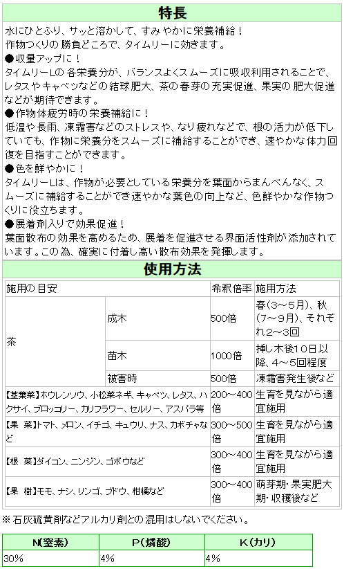 粉状液肥「タイムリーL」(1kg) 【20,000円以上購入で送料0円 安心価格】